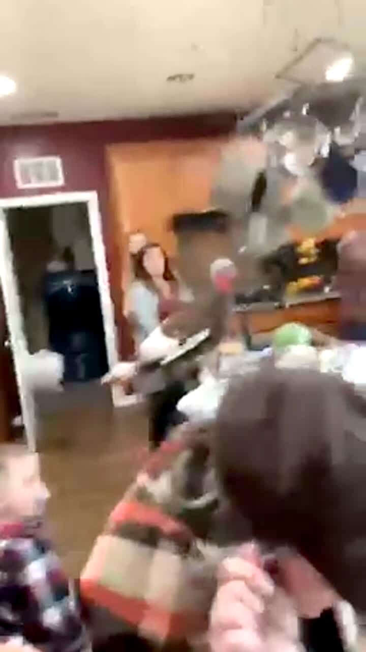 Someone let a turkey inside the house. It jumps up onto the kitchen counter just as a family is sitting down for Thanksgiving dinner causing chaos.